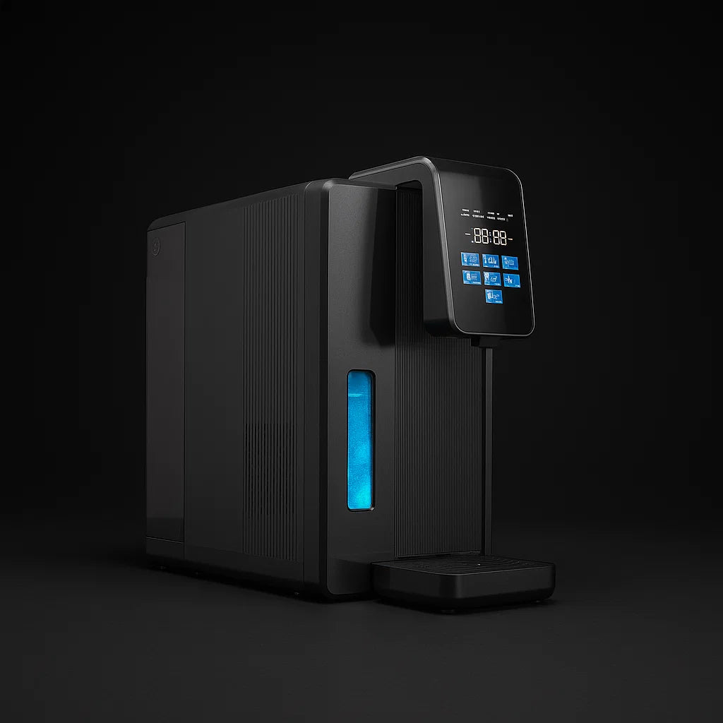 Våra enheter kombinerar omvänd osmos med inbyggd vätegenerator. Fördelar inkluderar: